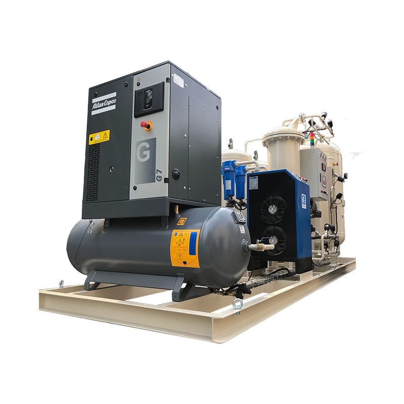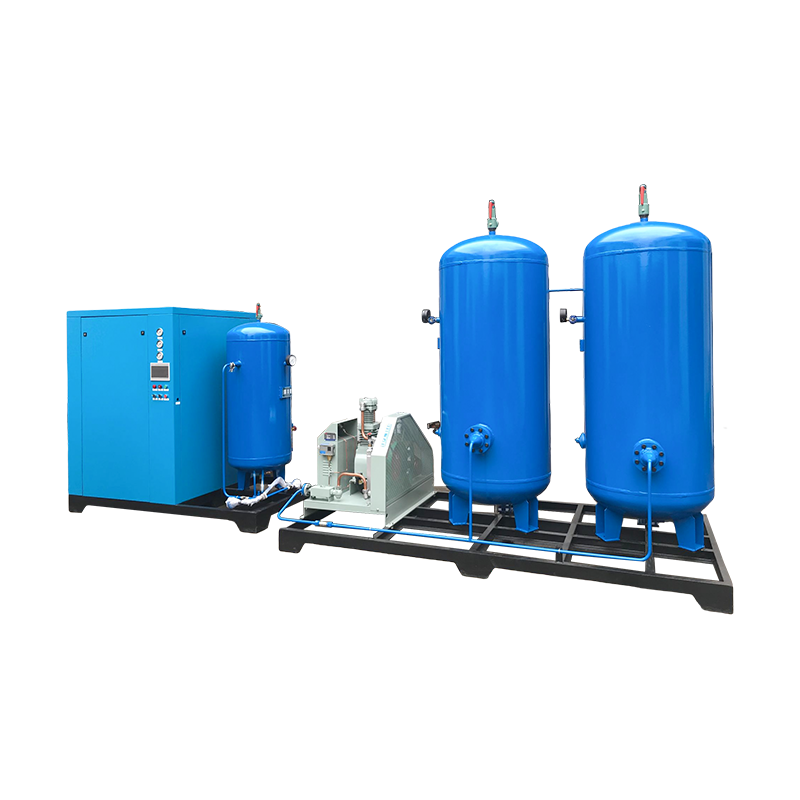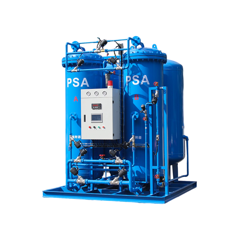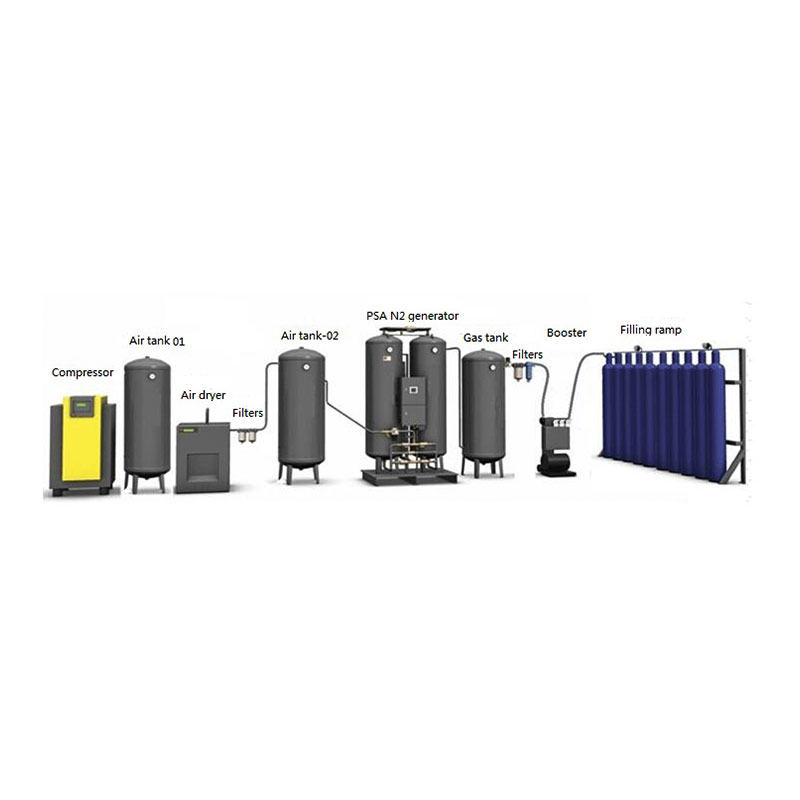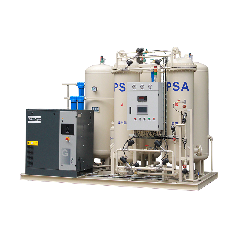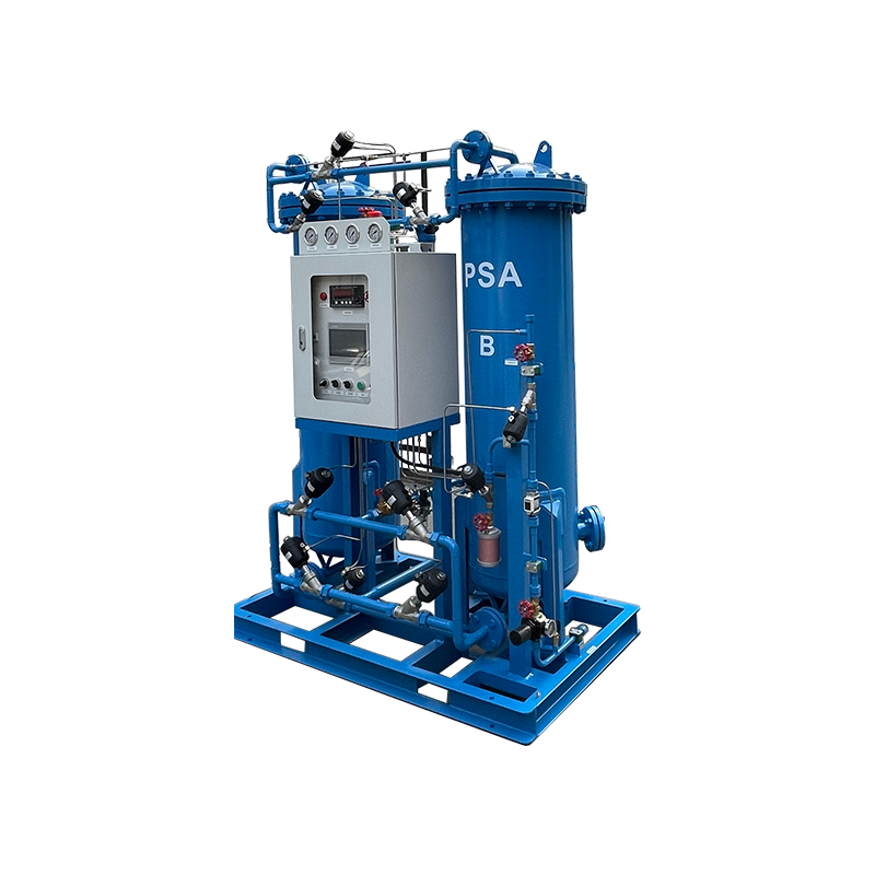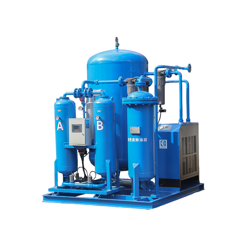 The clean compressed gas into KPN series PSA Nitrogen generator, the carbon molecular sieve adsorb the oxygen and release the Nitrogen. When the pressure rise up, carbon molecular sieve adsorb the oxygen, during the pressure reduce to the normal pressure, the carbon molecular sieve desorption the oxygen for regeneration. KPN series system generator with two tanks, one tank adsorb the oxygen to make the nitrogen, the other one on regeneration. For that cycle switching on two tanks, system can continue to make the nitrogen gas.